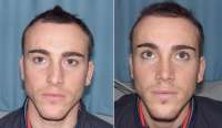 Il profilo mostra la netta differenza fra il naso prima dell'intervento di rinoplastica e dopo l'intervento. La foto di destra evidenzia la correzione della leggera gobba del naso on conseguente miglioramento estetico del profilo oltre al non trascurabile miglioramento funzionale del naso. Il paziente, un giocatore di calcio professionista, ha ripreso l'attività agonistica professionale con successo subito dopo l'intervento di rinoplastica ed il naso ha riacquisito la normale robustezza che aveva prima del trauma.