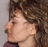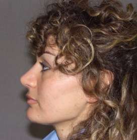 Anche in questo caso lo studio dell'immagine ha consentito di trovare il corretto bilanciamento e proporzioni per il viso. Durante la visita il chirurgo esegue una serie di foto per procedere allo studio dell'immagine. La foto a fianco mostra il profilo sinistro del viso nella sua fisionomia originaria.